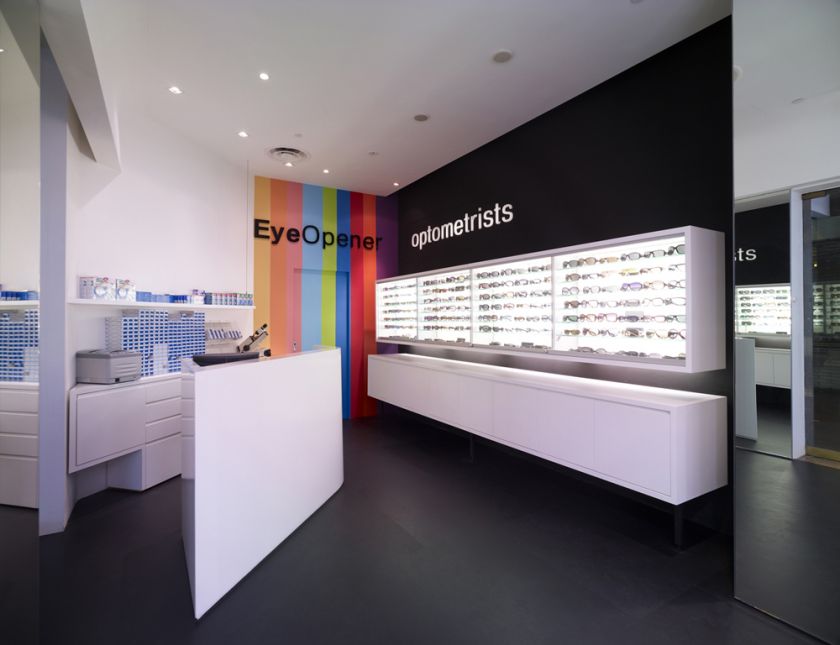 concealed lighting for maximum visual focus of displayed opticals. Other